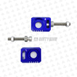 DirtyBike's CNC aluminum rear wheel adjusting block has 10mm (head) stainless steel captive adjustment bolts allowing you to move the axle forward or back during adjustment.